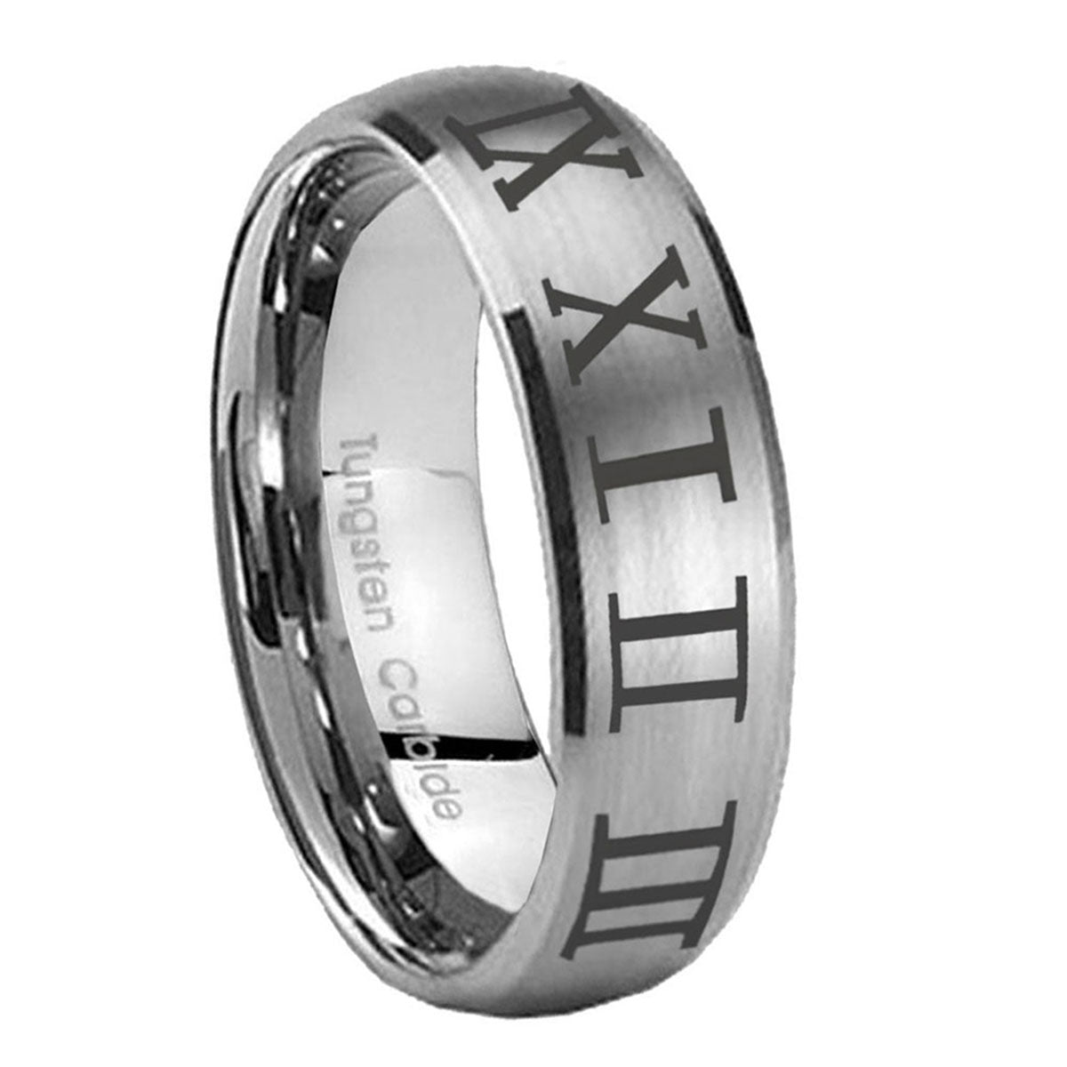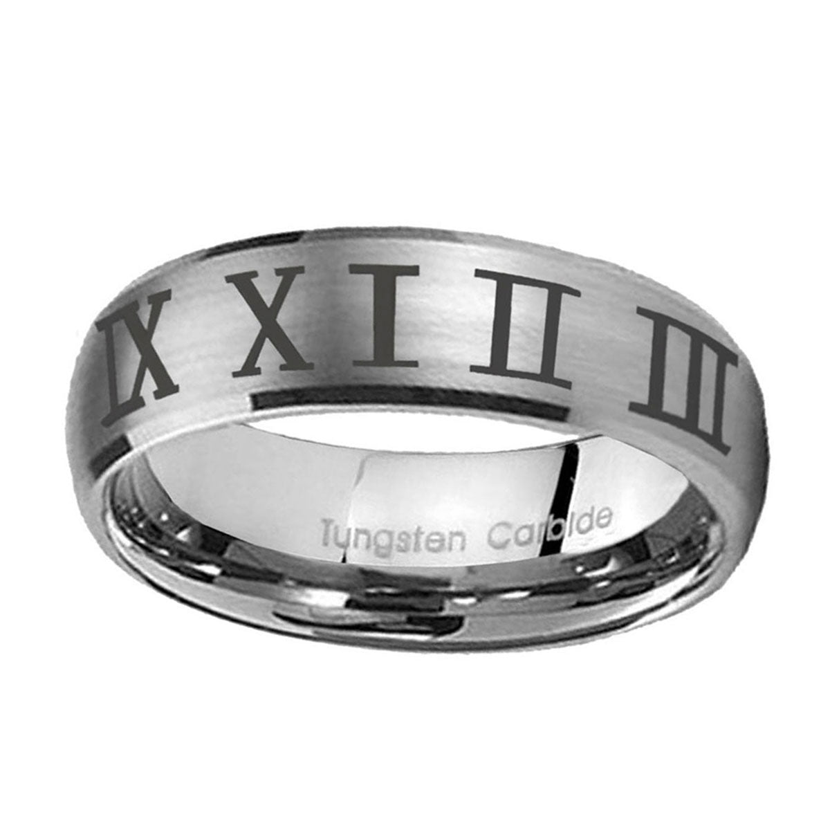 Propose with the 10mm Roman Numeral Dome Brushed Tungsten Carbide Men's Engagement Band. This brushed tungsten dome ring with Roman Numeral design is ideal for engagements.