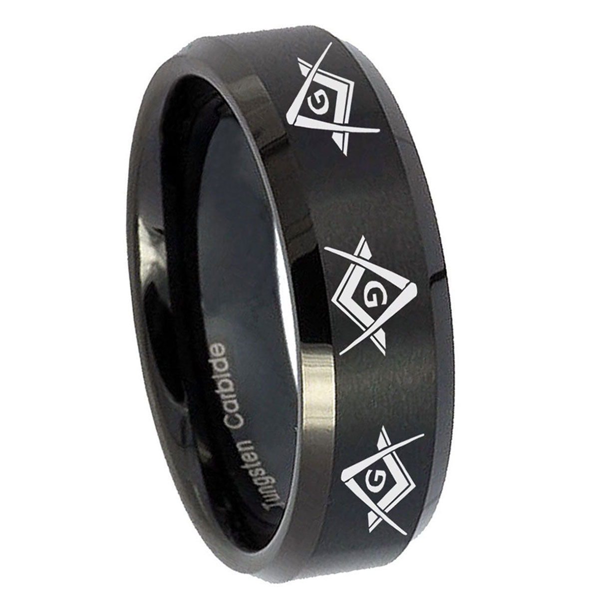 10mm Master Mason Masonic Beveled Brush Black Tungsten Men's Promise Rings