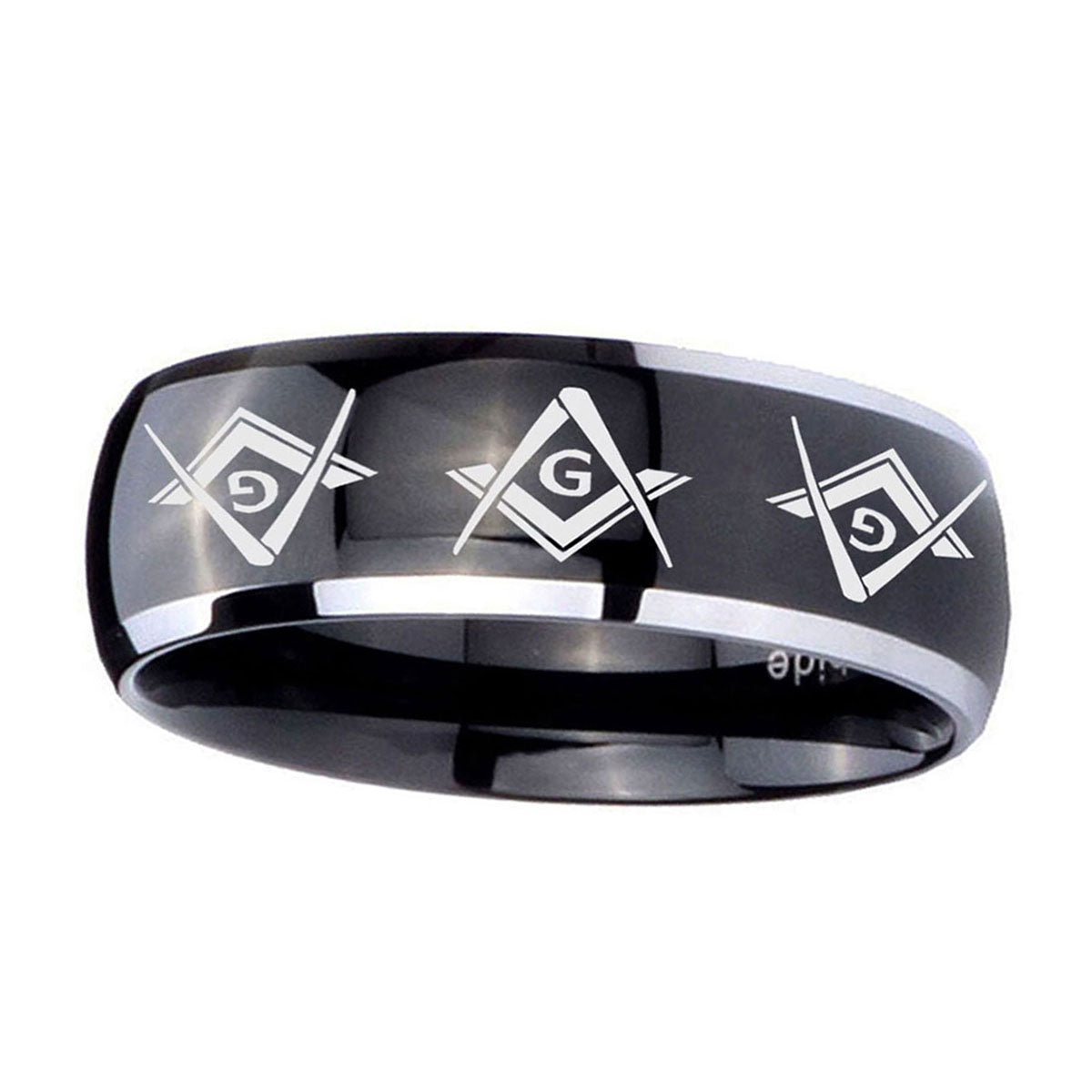 10mm Master Mason Masonic Dome Glossy Black 2 Tone Tungsten Custom Ring for Men