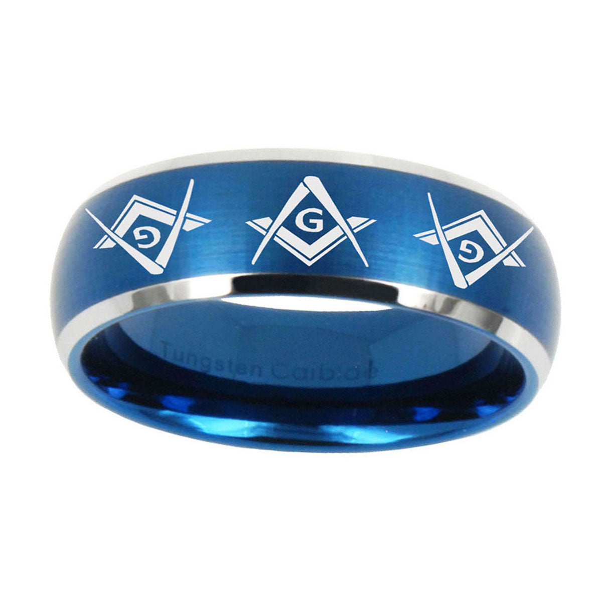 10mm Master Mason Masonic Dome Brushed Blue 2 Tone Tungsten Wedding Band Mens