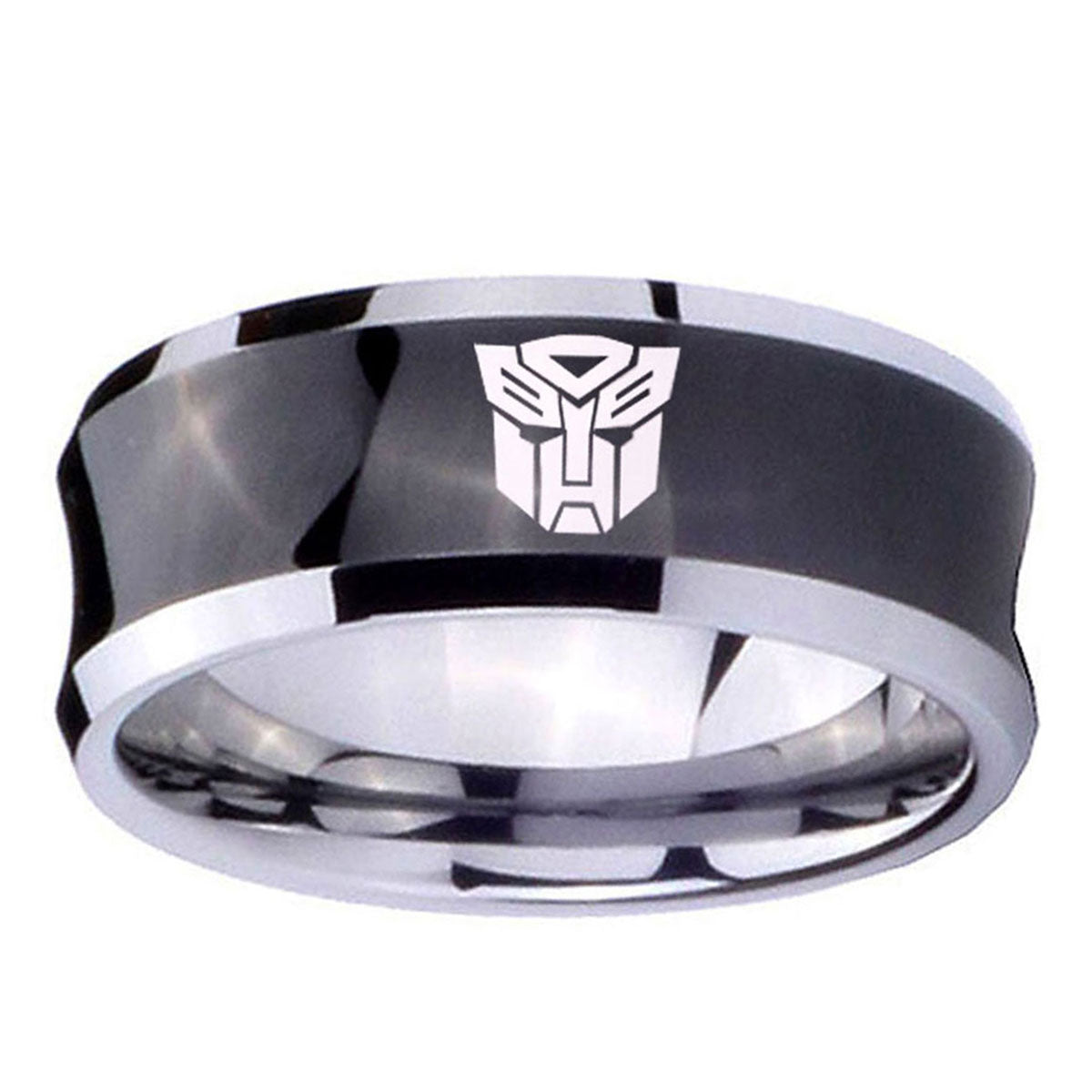 Celebrate with the 10mm Transformers Autobot Concave Black Tungsten Carbide Men's Wedding Ring. This concave black tungsten ring with Transformers Autobot design is perfect for weddings.