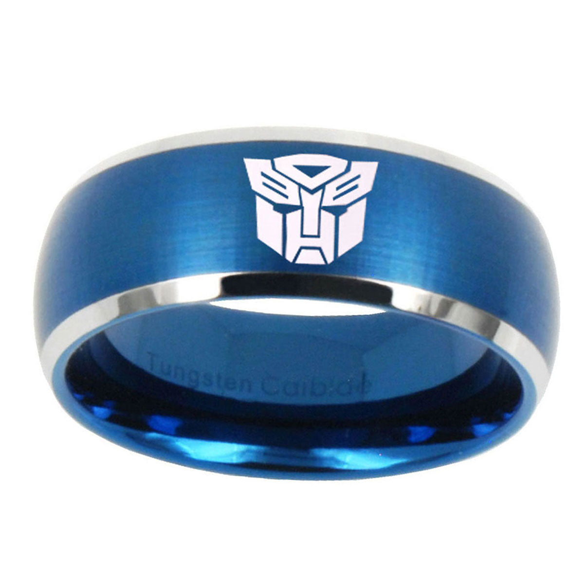 10mm Transformers Autobot Dome Brushed Blue 2 Tone Tungsten Mens Promise Ring