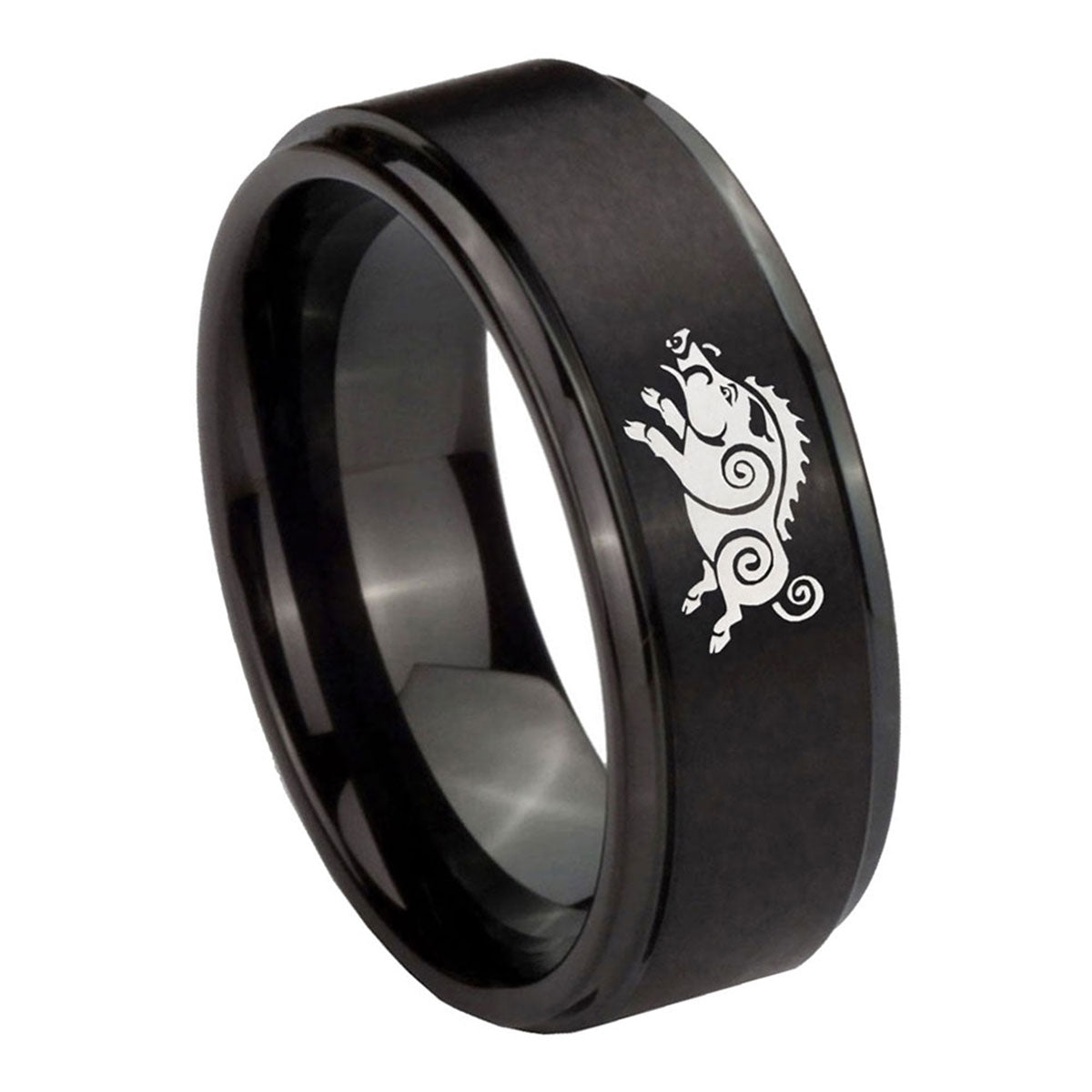 Make a promise with the 10mm Wild Boar Step Edges Brush Black Tungsten Men's Promise Rings. This brushed black ring with step edges and Wild Boar design is ideal for commitments.