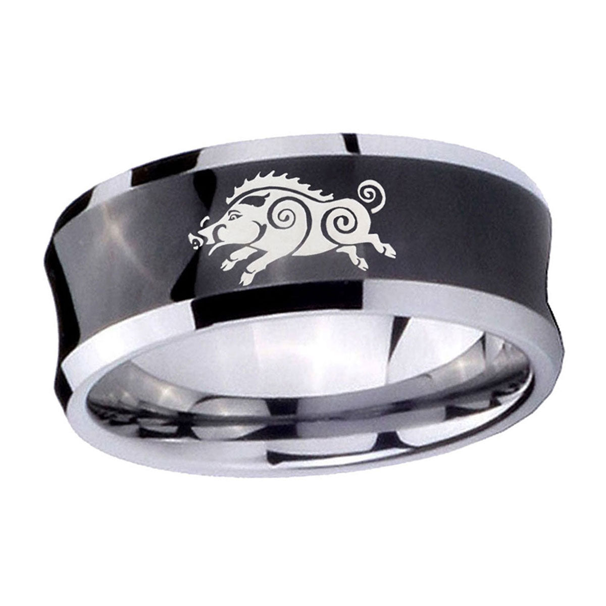 Propose with the 10mm Wild Boar Concave Black Tungsten Carbide Men's Engagement Band. This concave black tungsten ring with Wild Boar design is ideal for engagements.