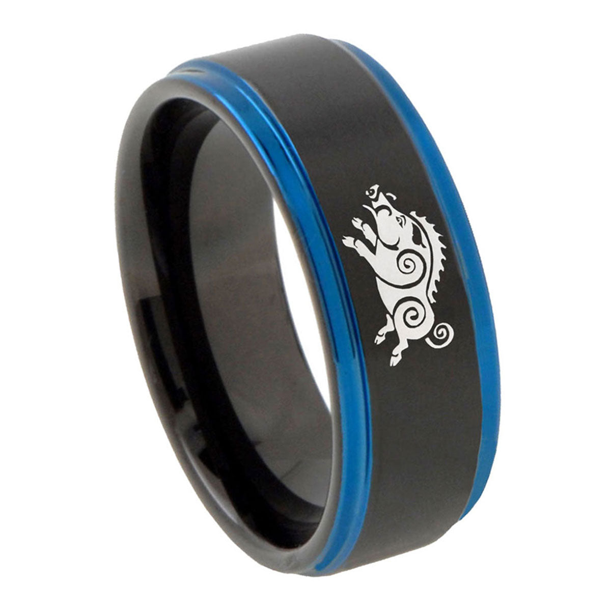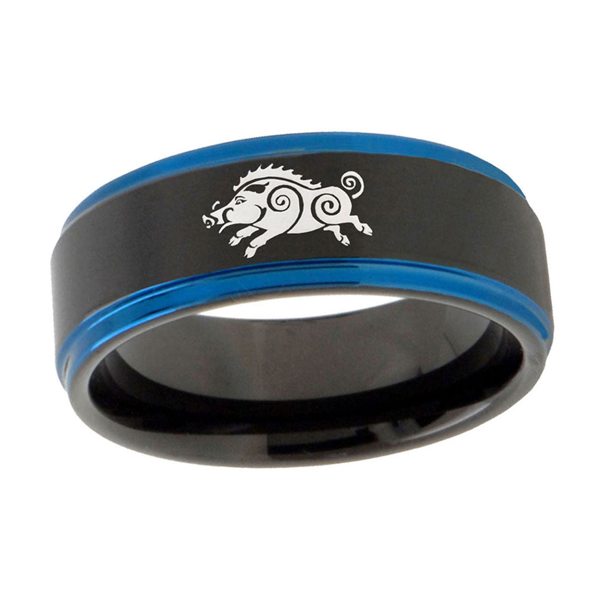 Make a promise with the 10mm Wild Boar Blue Step Edges Brushed Tungsten Carbide Mens Promise Ring. This brushed blue tungsten ring with Wild Boar design is ideal for commitments.