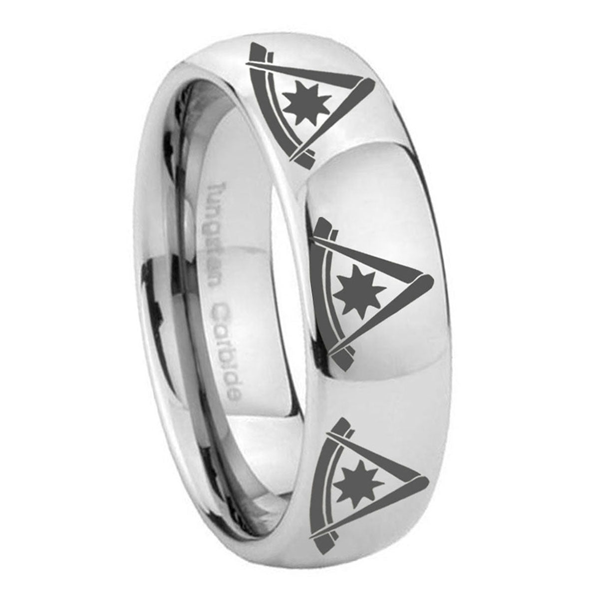 10mm Multiple Pester Master Masonic Mirror Dome Tungsten Mens Anniversary Ring