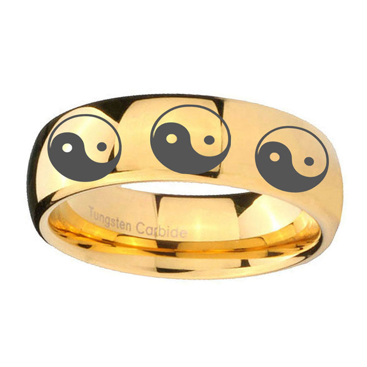 10mm Multiple Yin Yang Dome Gold Tungsten Carbide Mens Anniversary Ring