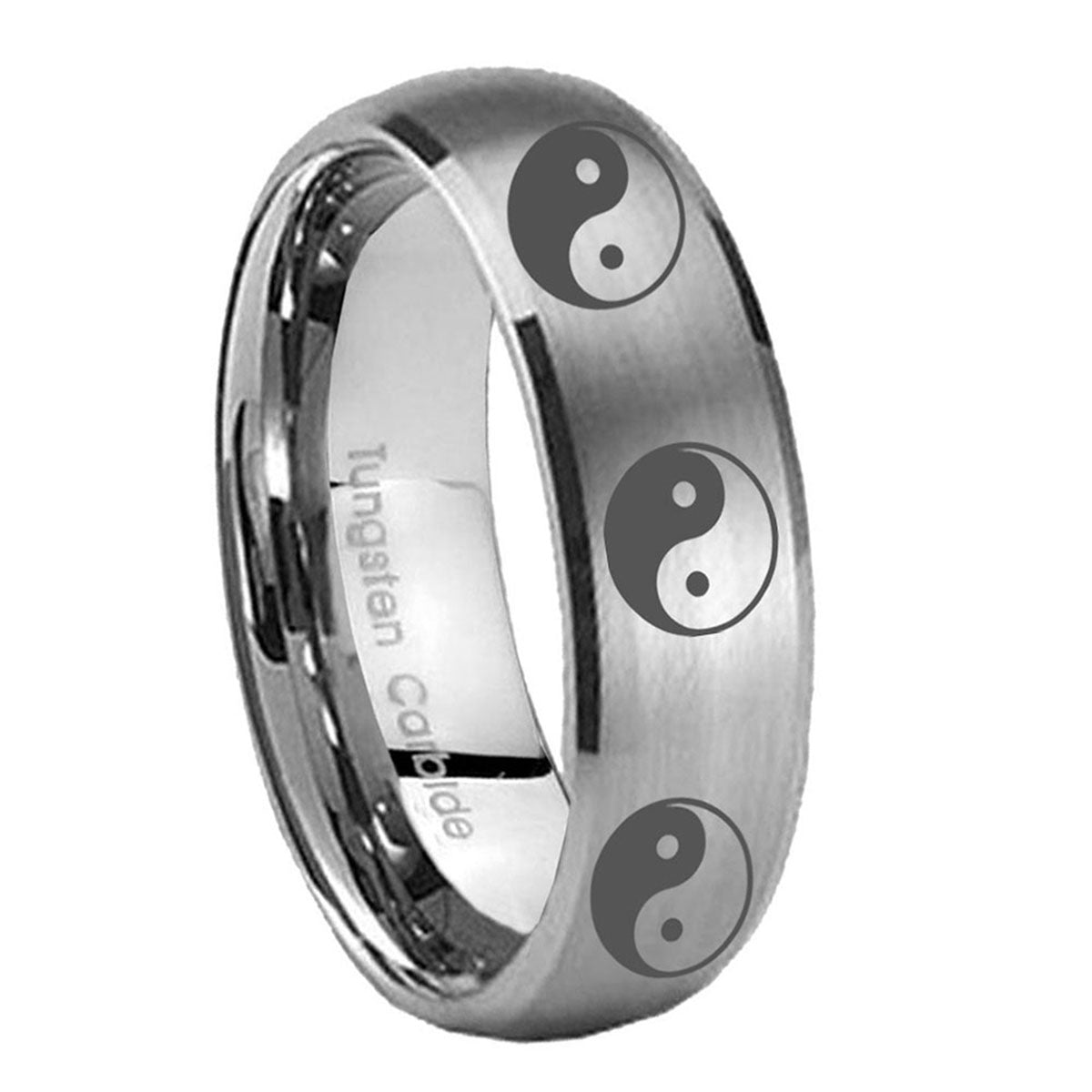 10mm Multiple Yin Yang Dome Brushed Tungsten Carbide Mens Ring Engraved