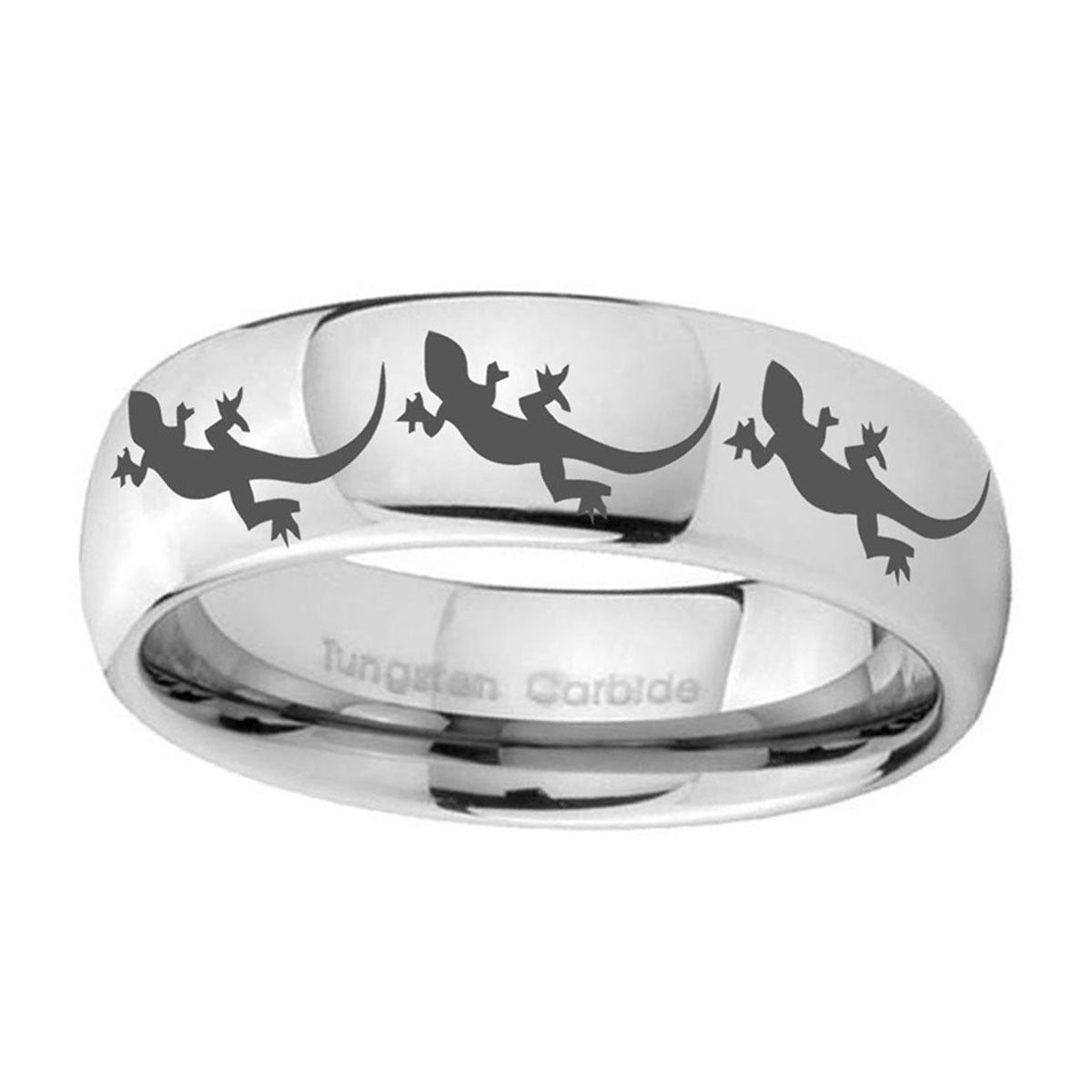 Propose with the 10mm Multiple Lizard Mirror Dome Tungsten Carbide Mens Engagement Band. This polished mirror dome ring with Multiple Lizard design is ideal for engagements.
