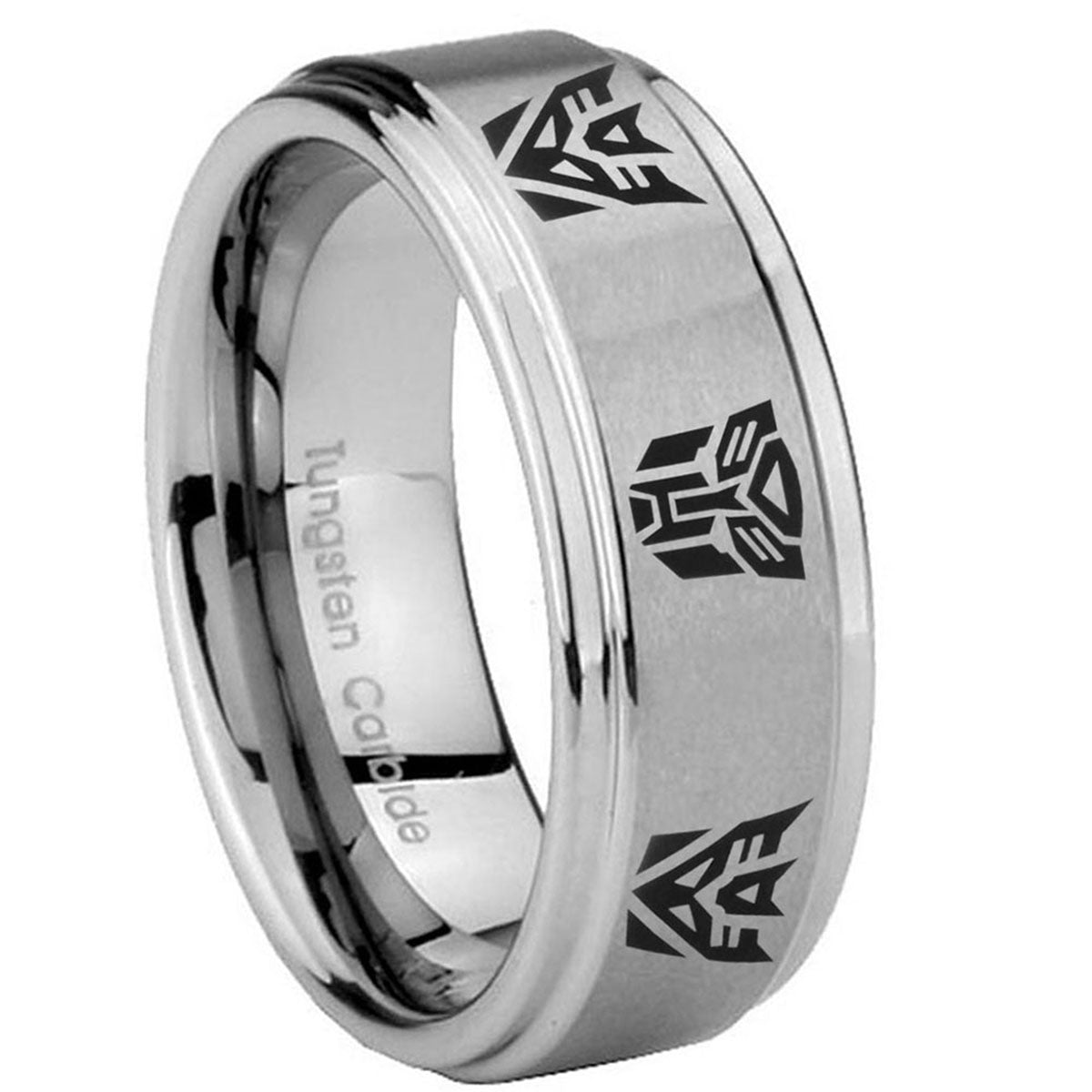 10mm Transformers Autobot Decepticon Step Edges Brushed Tungsten Custom Mens Ring