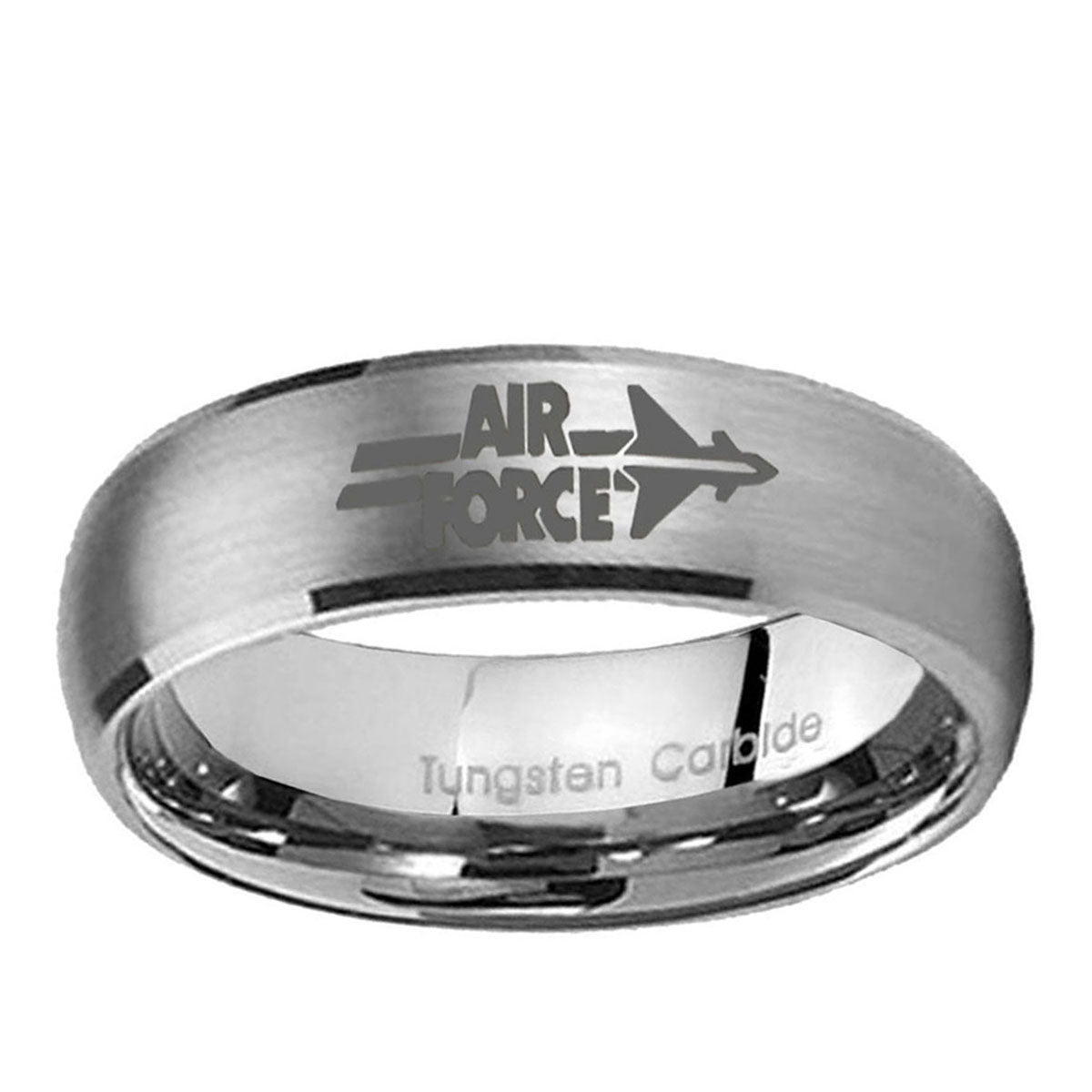 10mm Classic Satin Silver Dome Air Force Tungsten Laser Engraved Ring