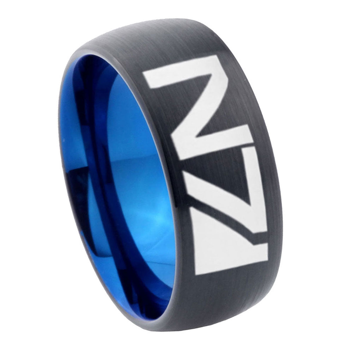 Propose with the 10mm N7 Design Dome Tungsten Carbide Blue Engagement Ring. This blue tungsten dome ring with N7 Design is ideal for engagements.