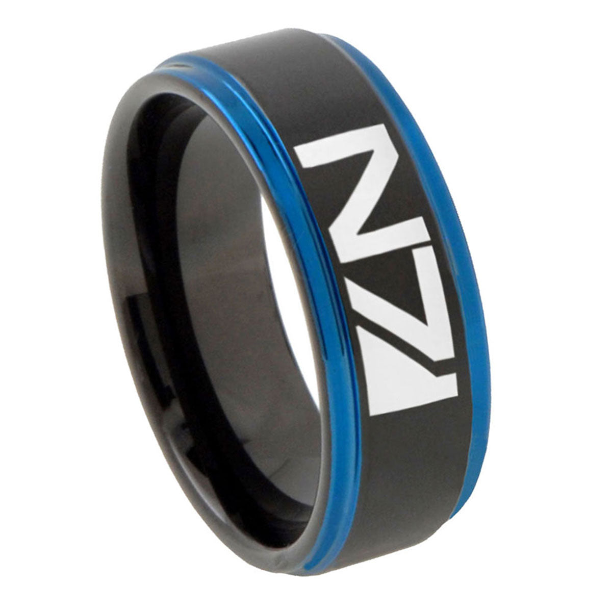 Make a promise with the 10mm N7 Design Blue Step Edges Brushed Tungsten Carbide Mens Promise Ring. This brushed blue tungsten ring with N7 Design is ideal for commitments.