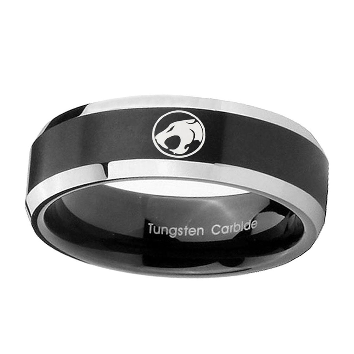 Make a promise with the 10mm Thundercat Beveled Edges Brush Black 2 Tone Tungsten Men's Promise Rings. This brushed black and 2-tone tungsten ring with Thundercat design is ideal for commitments.