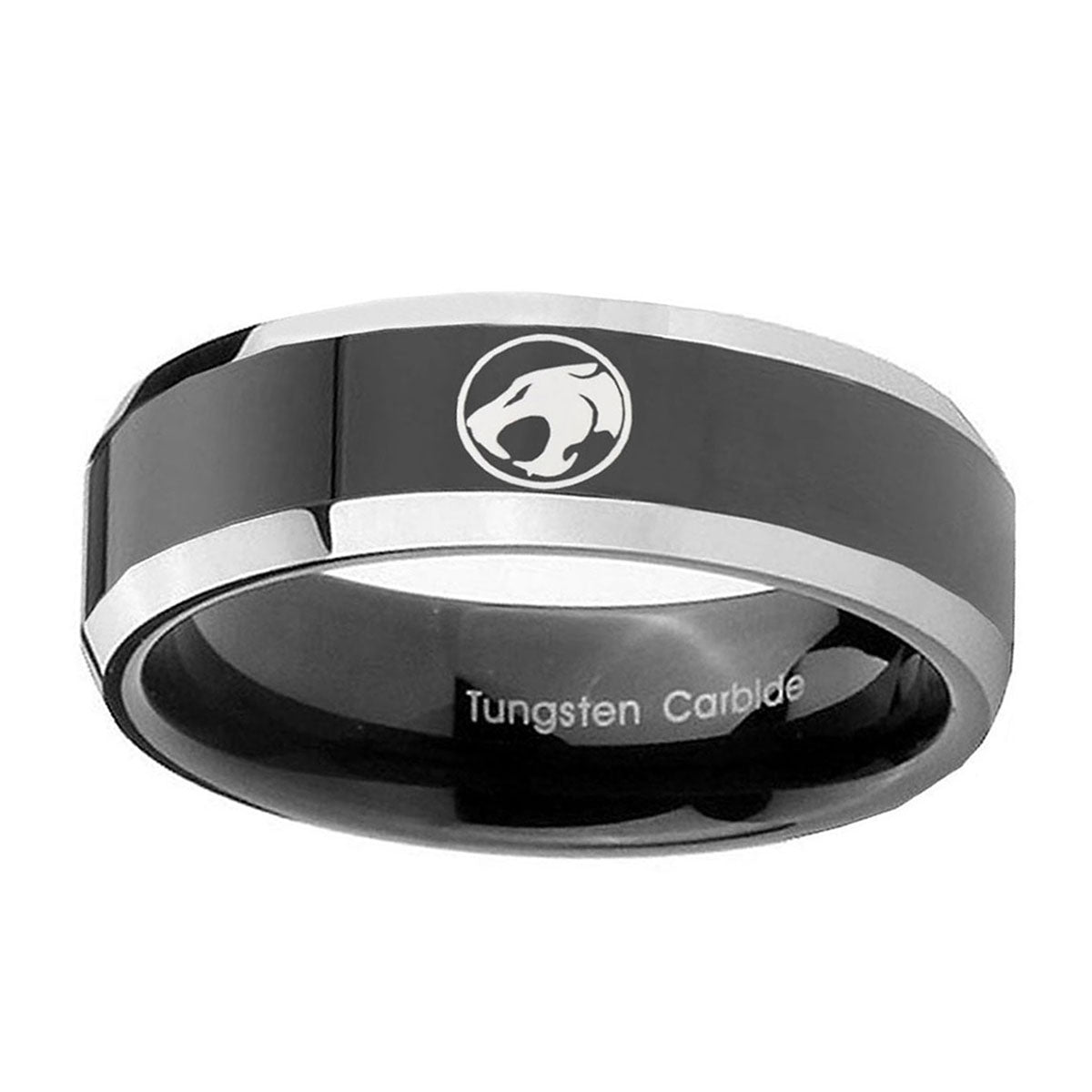 Style the 10mm Thundercat Beveled Edges Glossy Black 2 Tone Tungsten Carbide Bands Ring. This glossy black and 2-tone tungsten ring with Thundercat design is perfect for men.