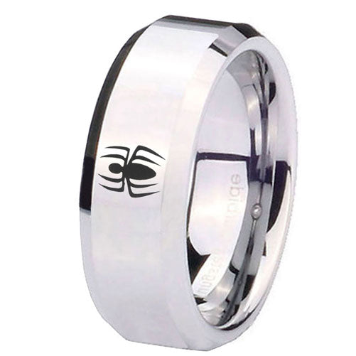 Customize the 10mm Spiderman Beveled Edges Silver Tungsten Carbide Custom Ring for Men. This silver tungsten ring with Spiderman design is perfect for personalization.