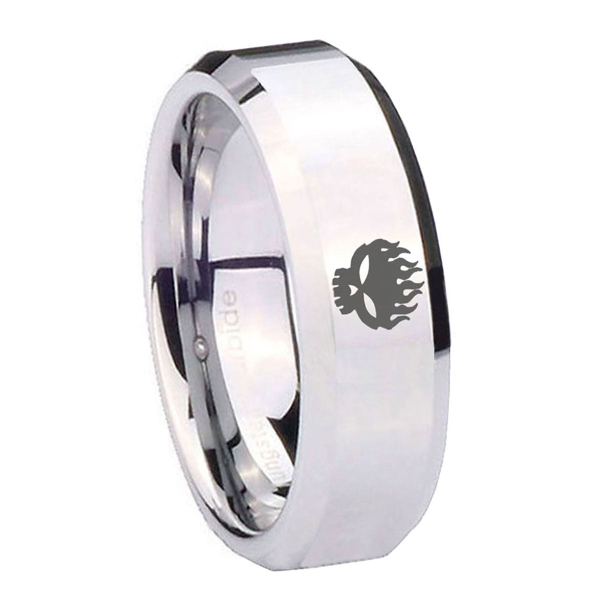 Propose with the 10mm Offspring Beveled Edges Silver Tungsten Carbide Engagement Ring. This silver tungsten ring with Offspring design is ideal for engagements.