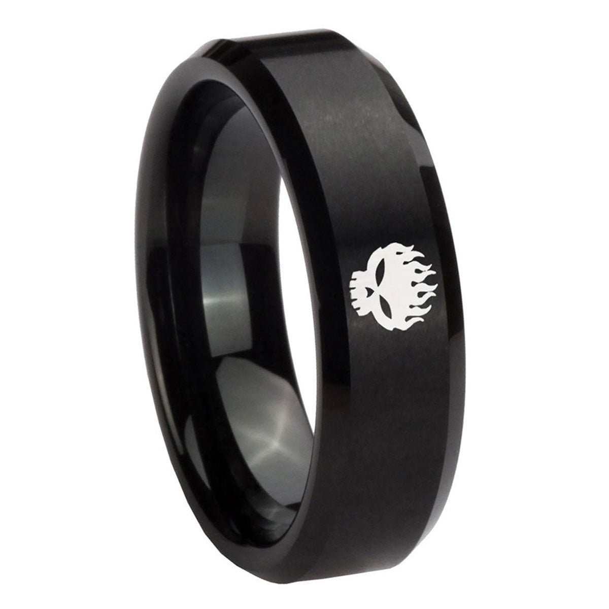 Propose with the 10mm Offspring Beveled Edges Brush Black Tungsten Carbide Men's Engagement Ring. This brushed black tungsten ring with Offspring design is ideal for engagements.