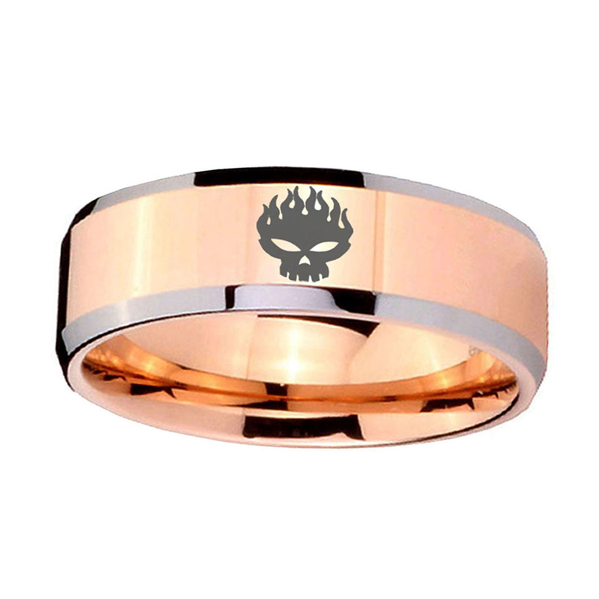 10mm Offspring Beveled Edges Rose Gold Tungsten Carbide Wedding Engagement Ring
