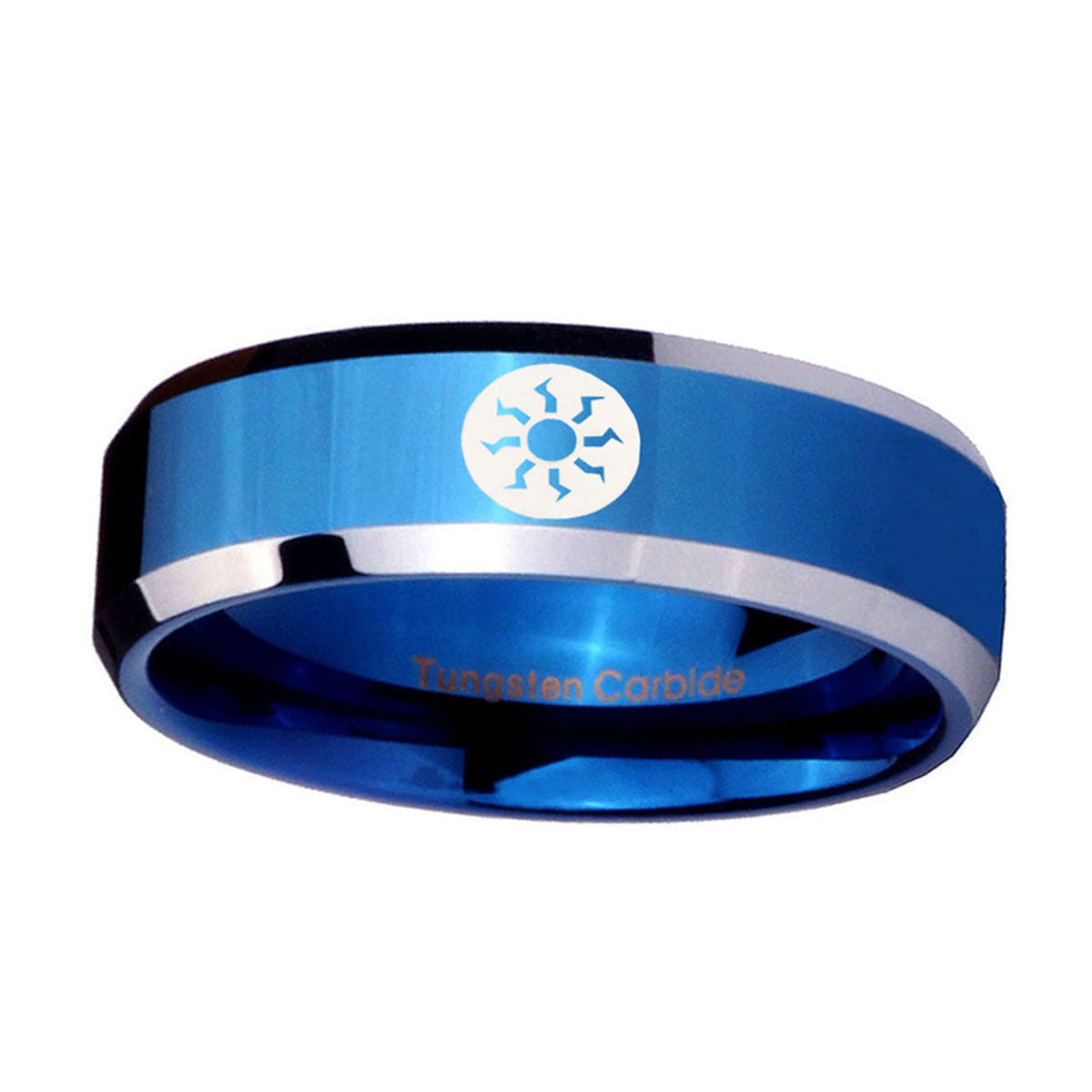 10mm Magic The Gathering Beveled Edges Blue 2 Tone Tungsten Anniversary Ring