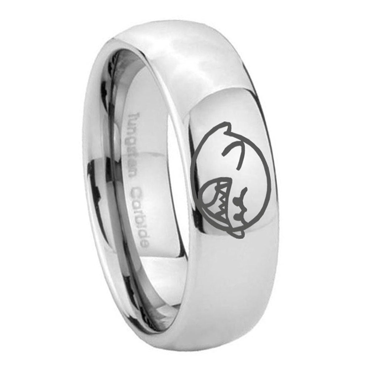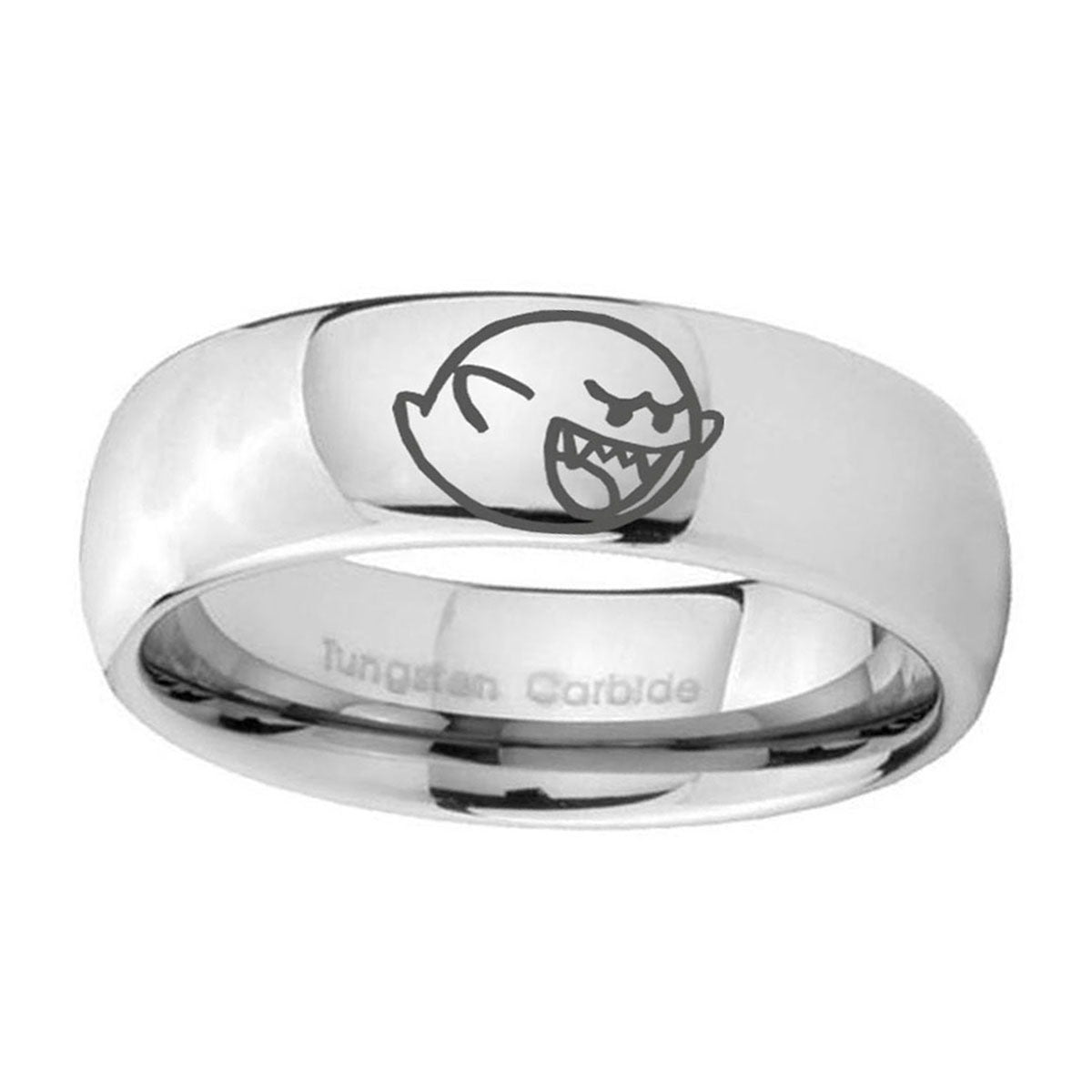10mm Mario Boo Ghost Mirror Dome Tungsten Carbide Custom Mens Ring