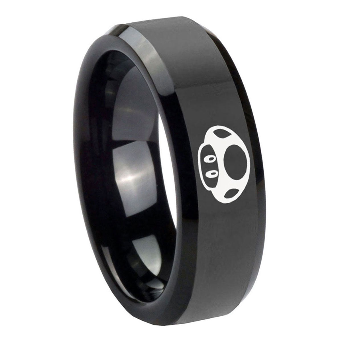 Propose with the 10mm Mario Mushroom Beveled Edges Black Tungsten Carbide Engagement Ring. This black tungsten ring with Mario Mushroom design is ideal for engagements.