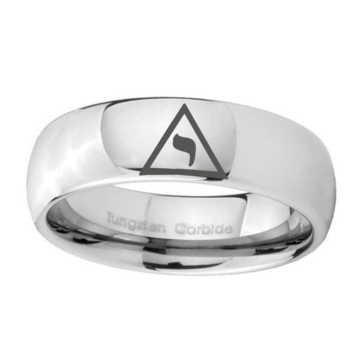 10mm Masonic Yod Mirror Dome Tungsten Carbide Engagement Ring