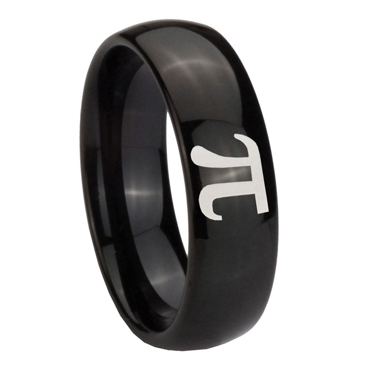 Personalize the 10mm Math Pi Dome Black Tungsten Carbide Mens Ring Personalized. This dome-shaped black tungsten ring with Math Pi design is perfect for custom engravings.