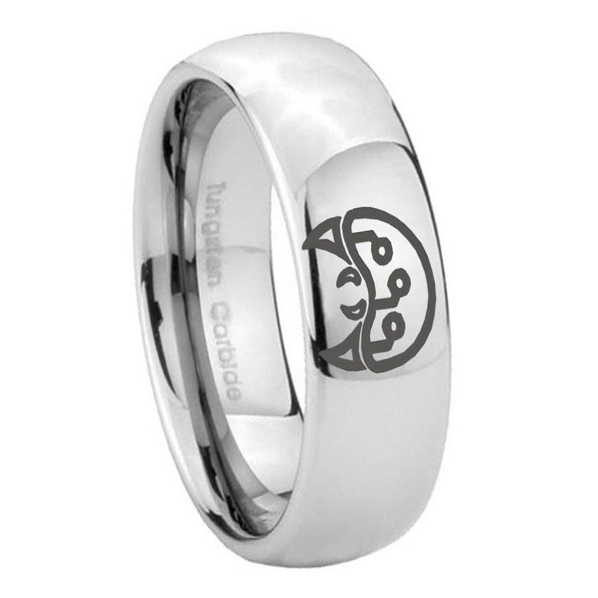 Celebrate with the 10mm Metroid Mirror Dome Tungsten Carbide Mens Wedding Band. This polished mirror dome ring with Metroid design is perfect for weddings.