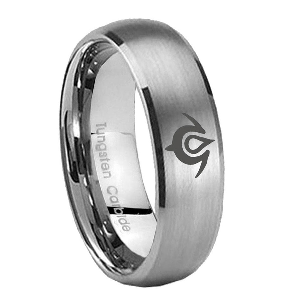 Celebrate with the 10mm Naga Dome Brushed Tungsten Carbide Mens Wedding Band. This brushed tungsten dome ring with Naga design is perfect for weddings.