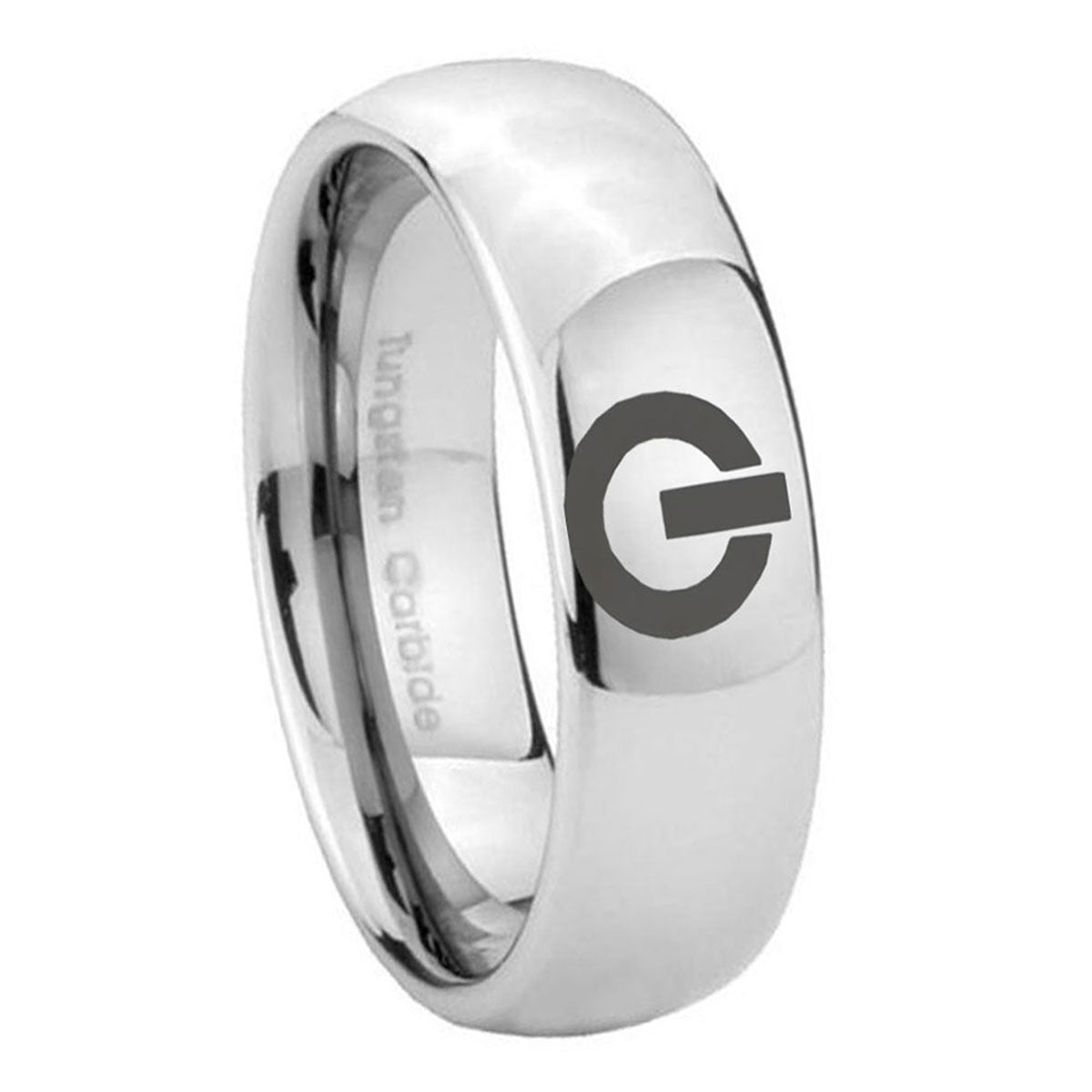 Customize the 10mm Power Mirror Dome Tungsten Carbide Custom Ring for Men. This polished mirror dome ring with Power design is perfect for personalization.