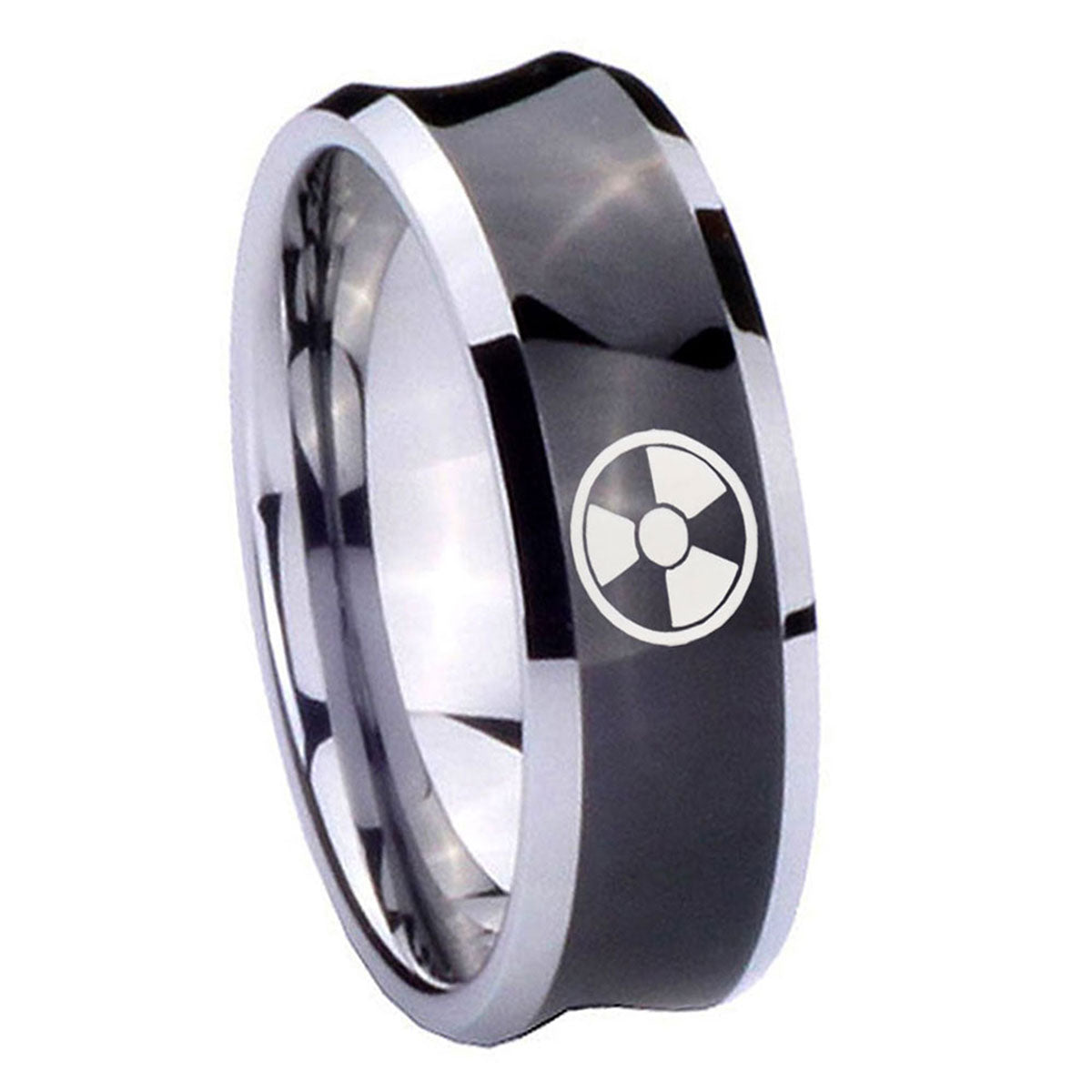 Propose with the 10mm Radiation Concave Black Tungsten Carbide Mens Engagement Band. This concave black tungsten ring with Radiation design is ideal for engagements.