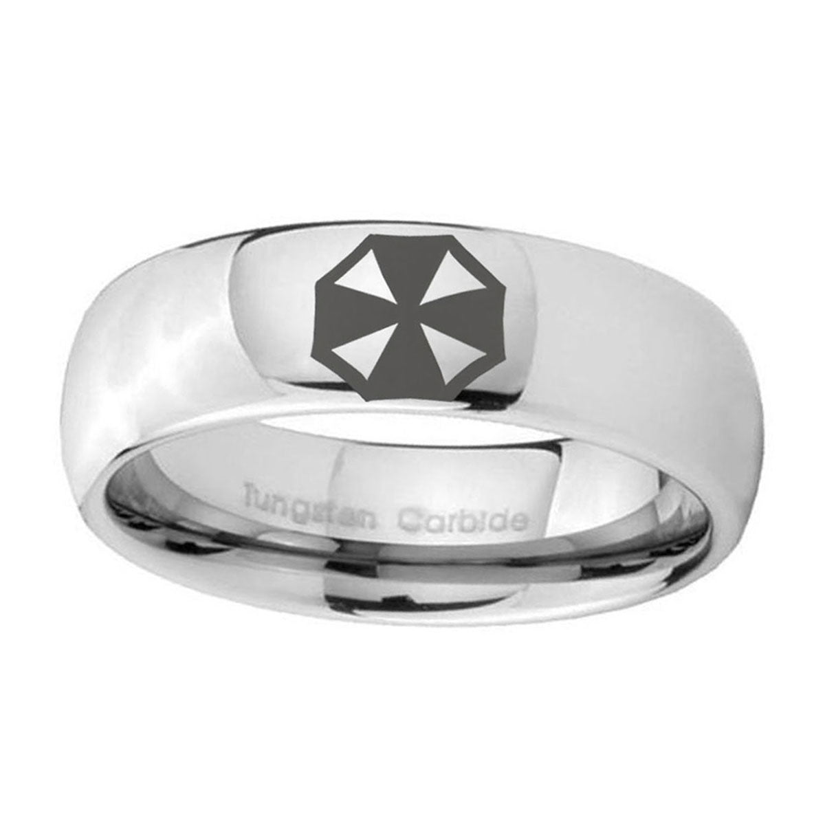 Make a promise with the 10mm Resident Evil Mirror Dome Tungsten Carbide Mens Promise Ring. This polished mirror dome ring with Resident Evil design is ideal for commitments.