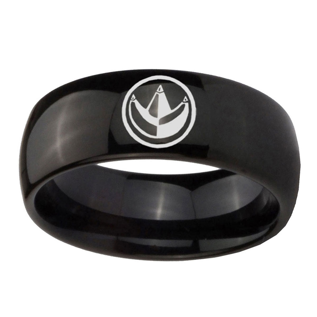 Celebrate milestones with the 10mm Green Ranger Power Dome Black Tungsten Carbide Mens Anniversary Ring. This dome-shaped black tungsten ring with Green Ranger Power design is perfect for anniversaries.