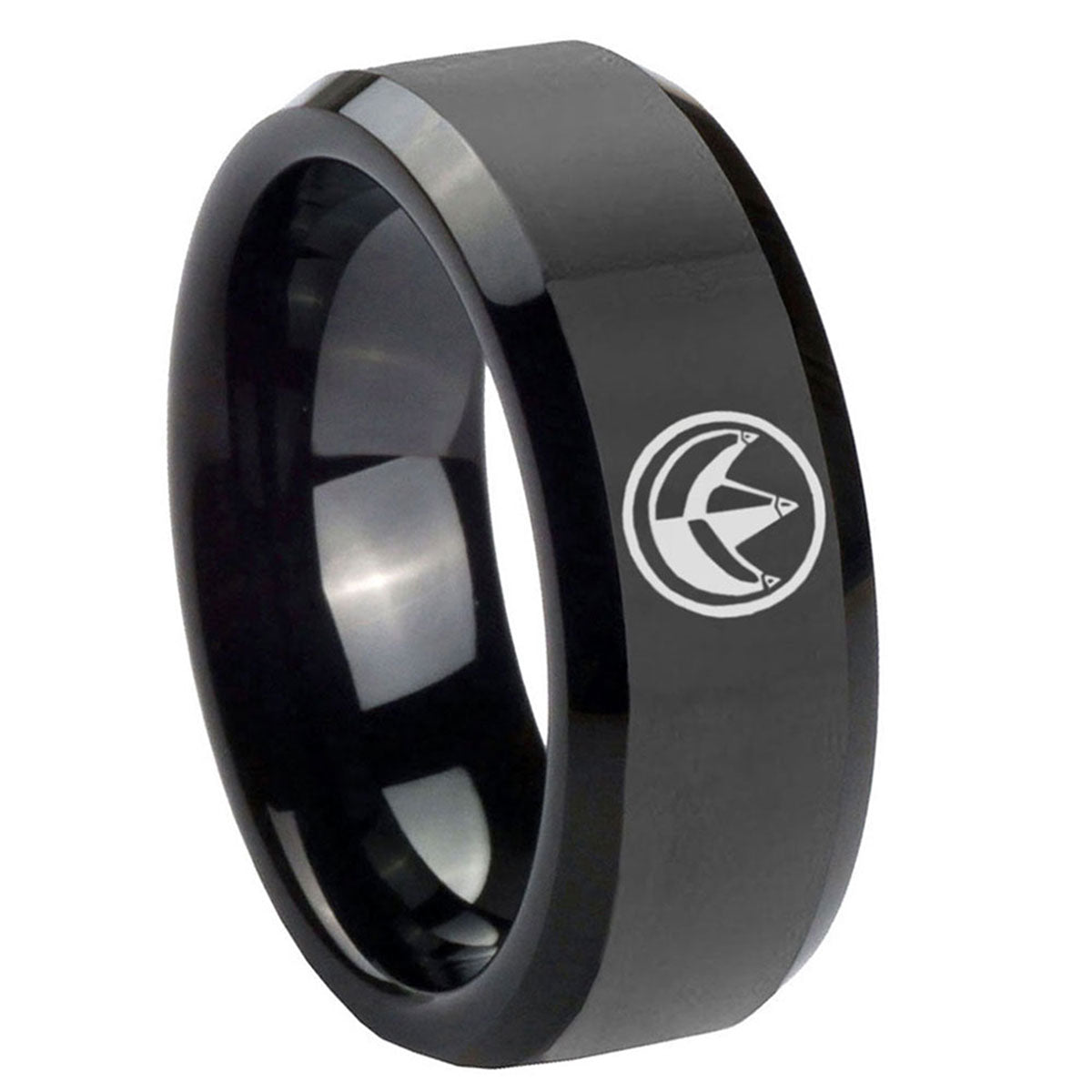Celebrate with the 10mm Green Ranger Power Beveled Edges Black Tungsten Carbide Men's Wedding Band. This black tungsten ring with Green Ranger Power design is perfect for weddings.