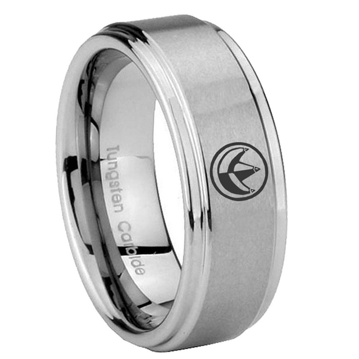 Celebrate with the 10mm Green Ranger Power Step Edges Brushed Tungsten Carbide Men's Wedding Ring. This brushed tungsten ring with Green Ranger Power design and step edges is perfect for weddings.