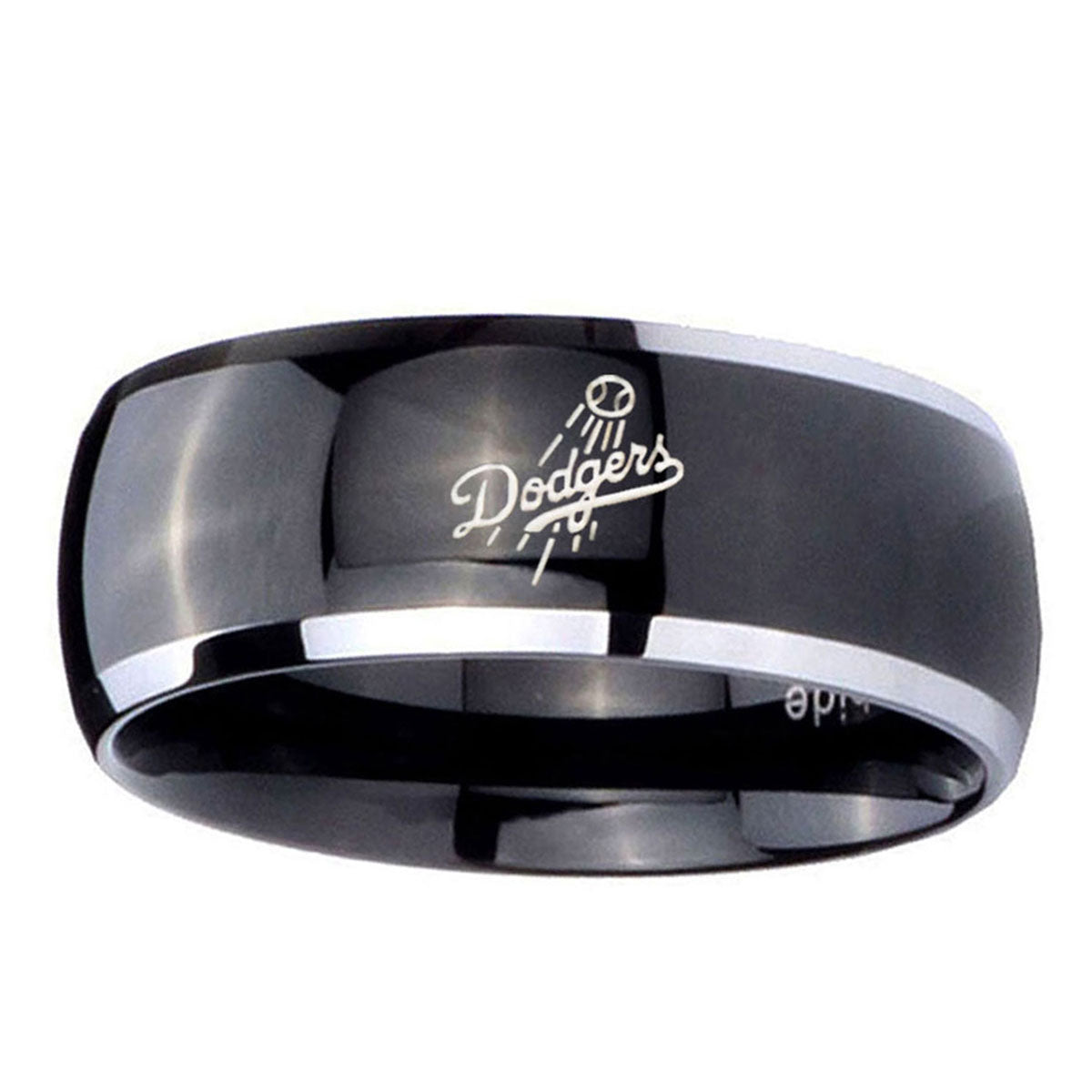 Celebrate with the 10mm LA Dogers MLB Baseball Dome Glossy Black 2 Tone Tungsten Men's Wedding Band. This glossy black and 2-tone dome ring with LA Dogers design is perfect for weddings.