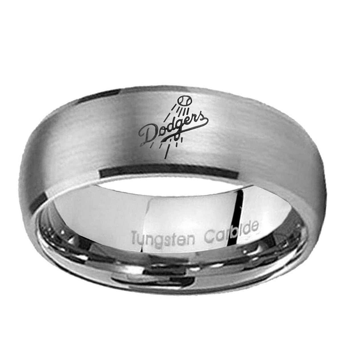 10mm LA Dogers MLB Baseball Dome Brushed Tungsten Carbide Mens Promise Ring