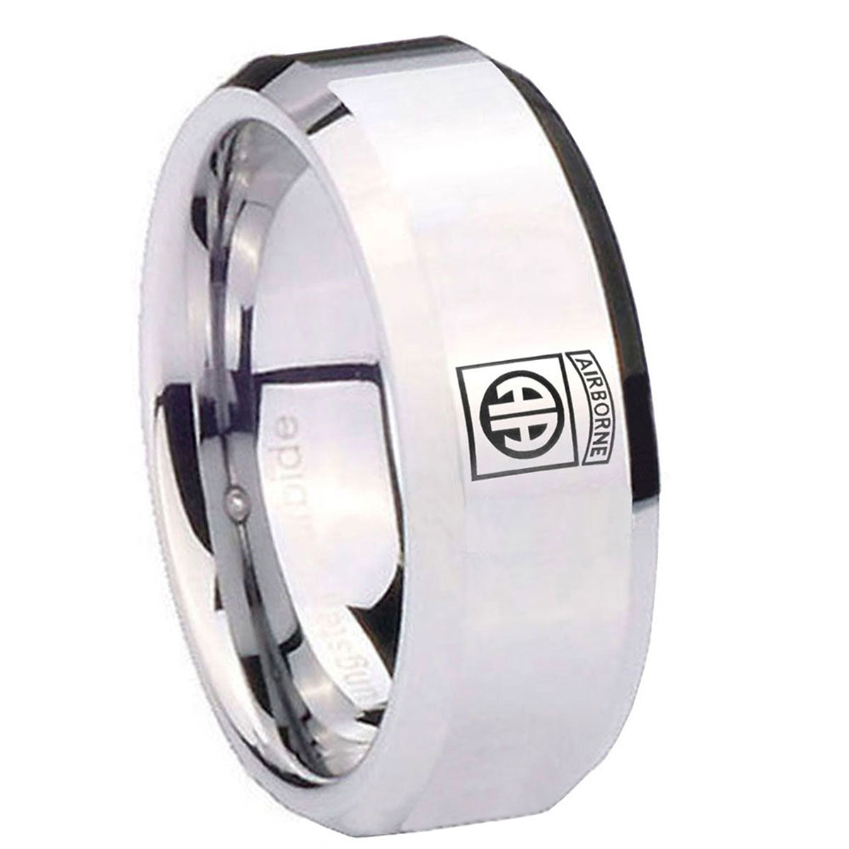 10mm Army Airborn Beveled Edges Silver Tungsten Carbide Men's Promise Rings
