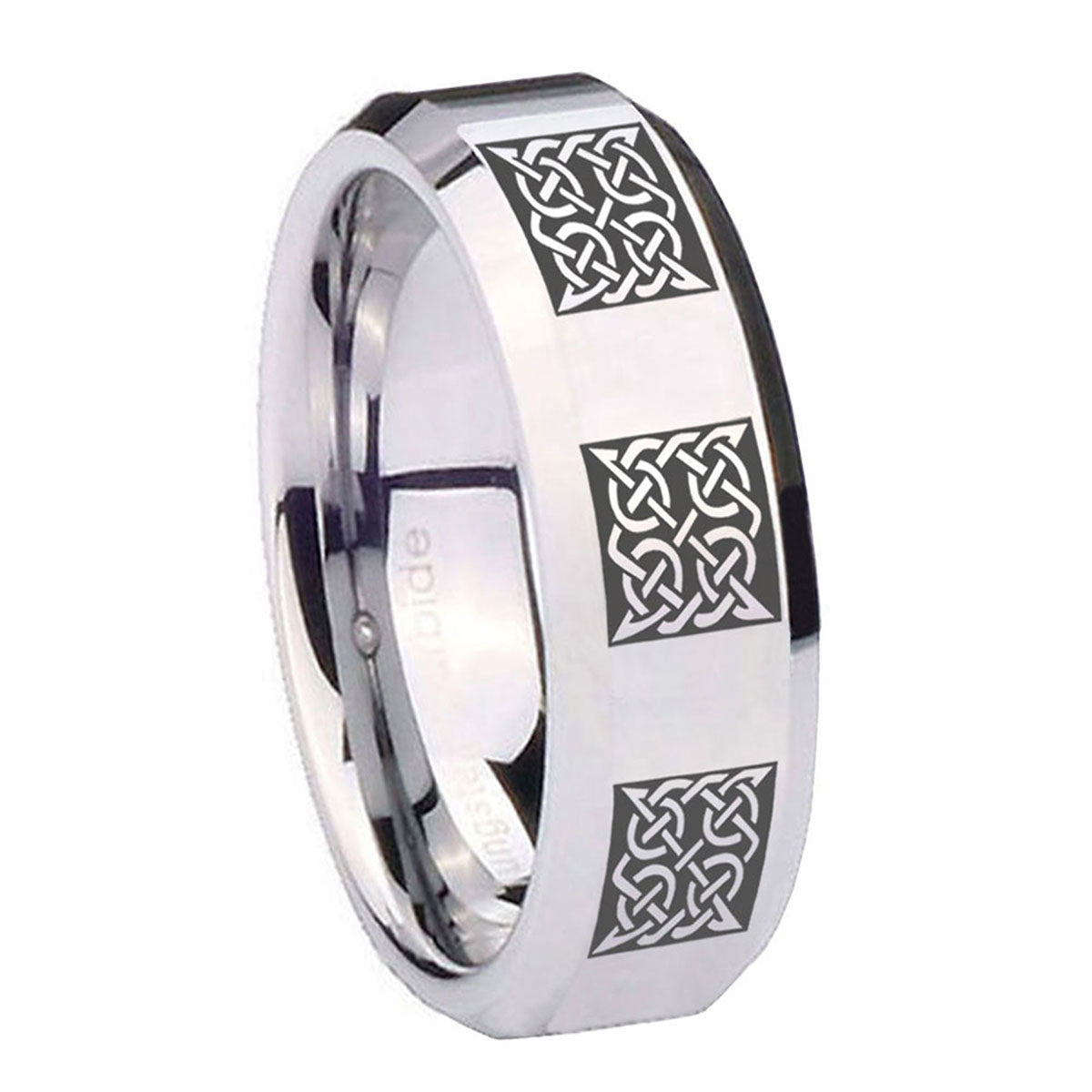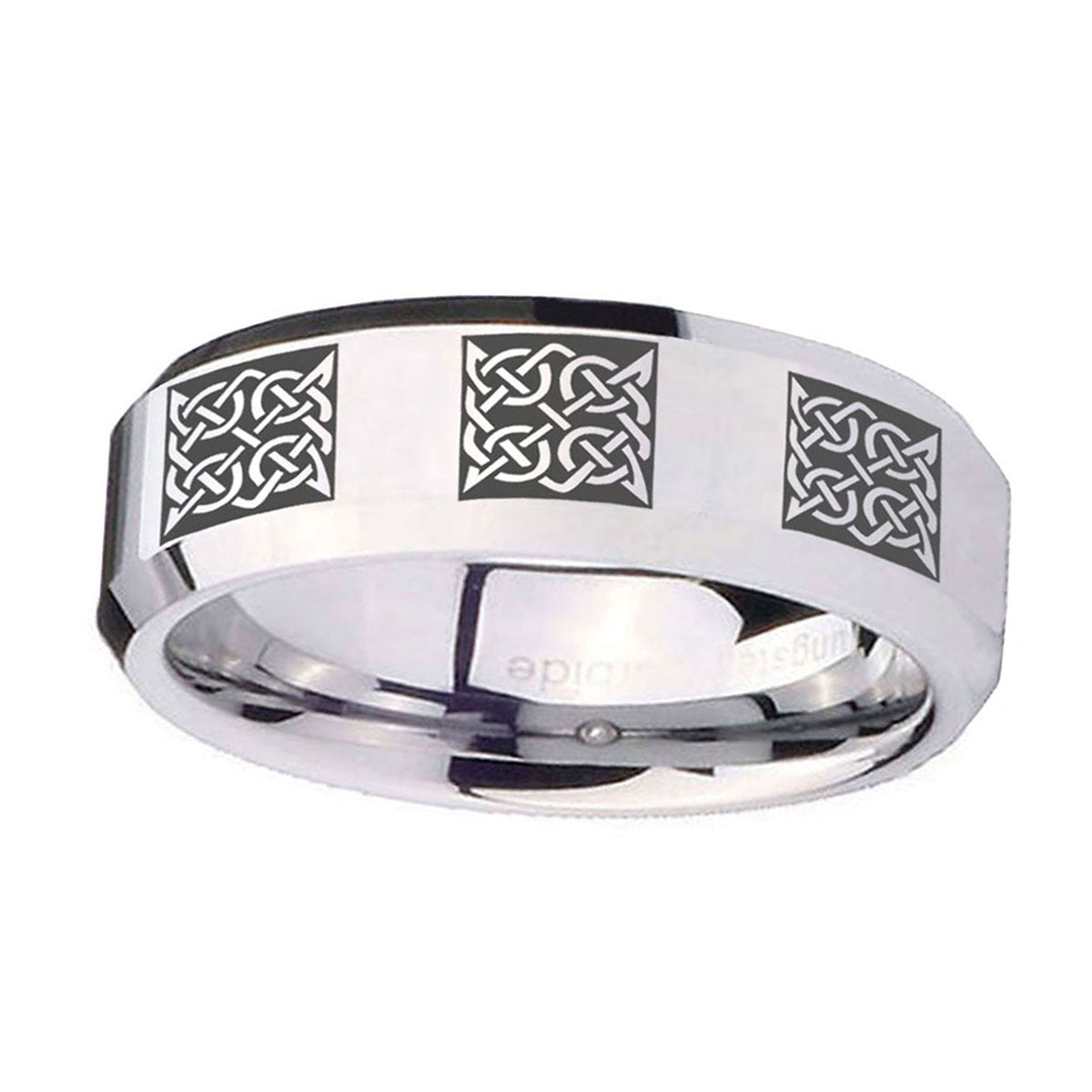 10mm Multiple Celtic Beveled Edges Silver Tungsten Mens Ring Personalized