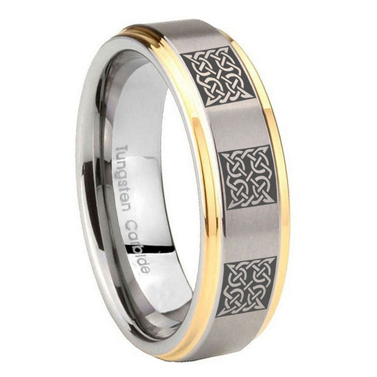 10mm Multiple Celtic Step Edges Gold 2 Tone Tungsten Men's Engagement Ring