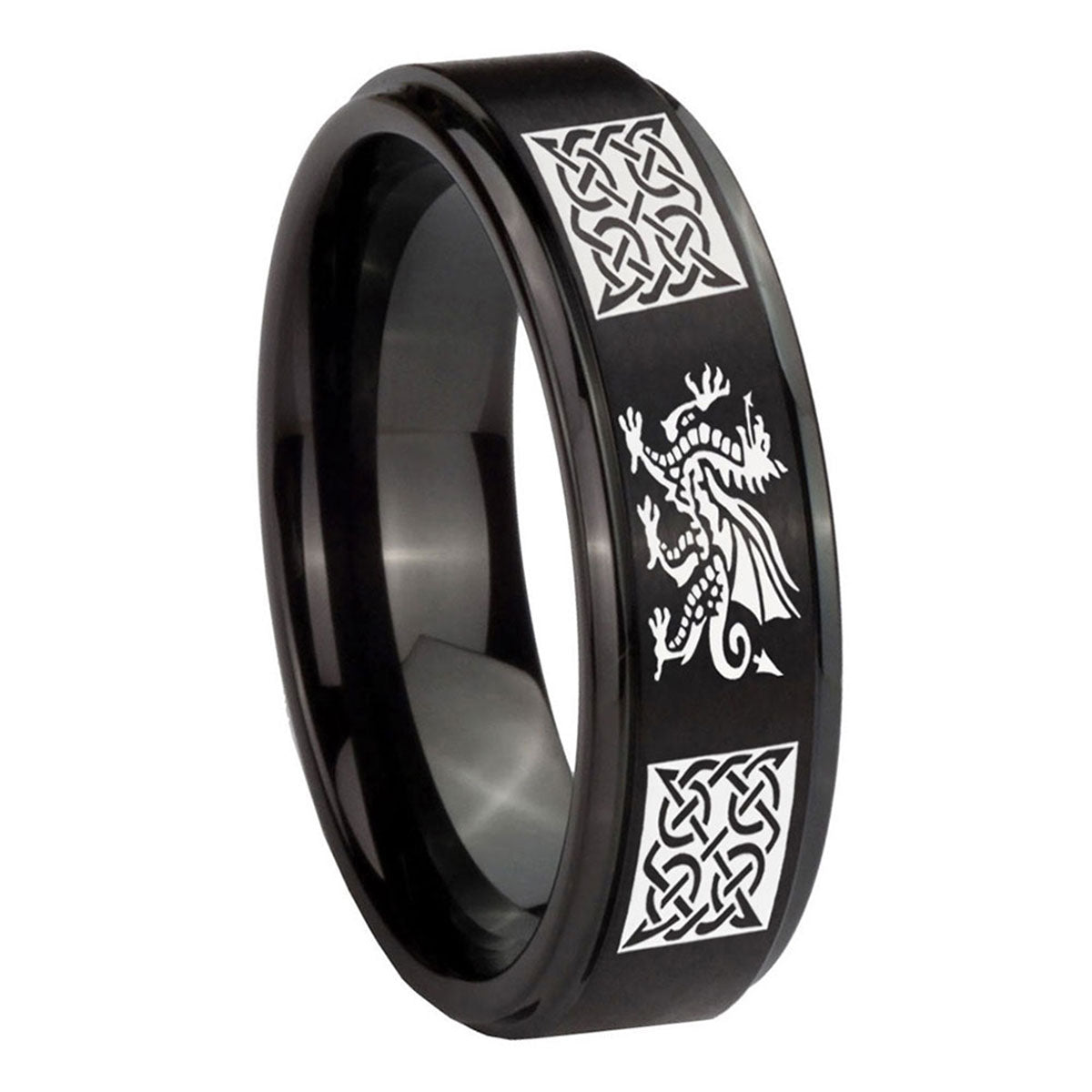 10mm Multiple Dragon Celtic Step Edges Brush Black Tungsten Anniversary Ring
