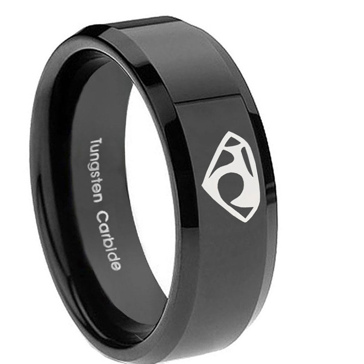 Propose with the 10mm House of Van Beveled Edges Black Tungsten Carbide Mens Engagement Band. This black tungsten ring with House of Van design is ideal for engagements.