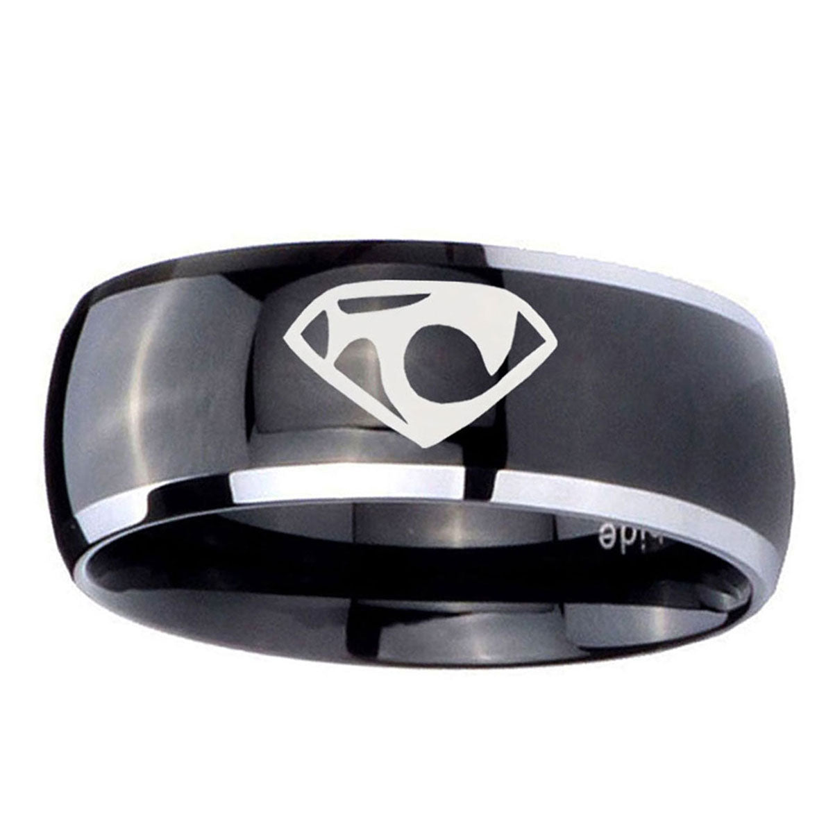 Celebrate with the 10mm House of Van Dome Glossy Black 2 Tone Tungsten Carbide Mens Wedding Band. This glossy black and 2-tone dome ring with House of Van design is perfect for weddings.