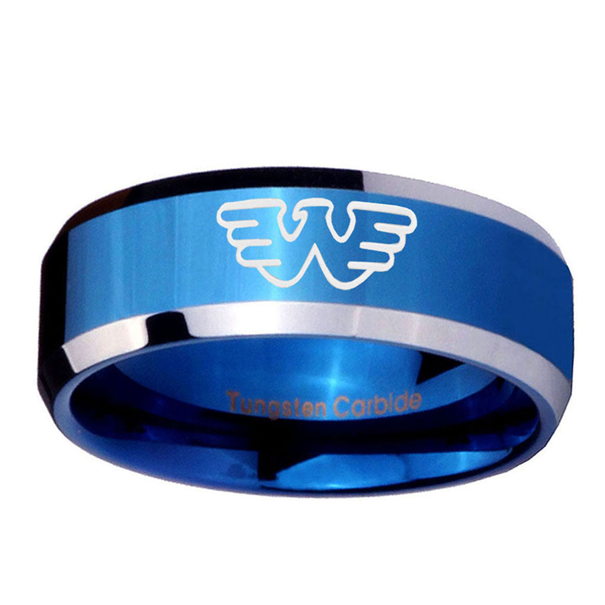 10mm Waylon Jennings Beveled Edges Blue 2 Tone Tungsten Mens Anniversary Ring