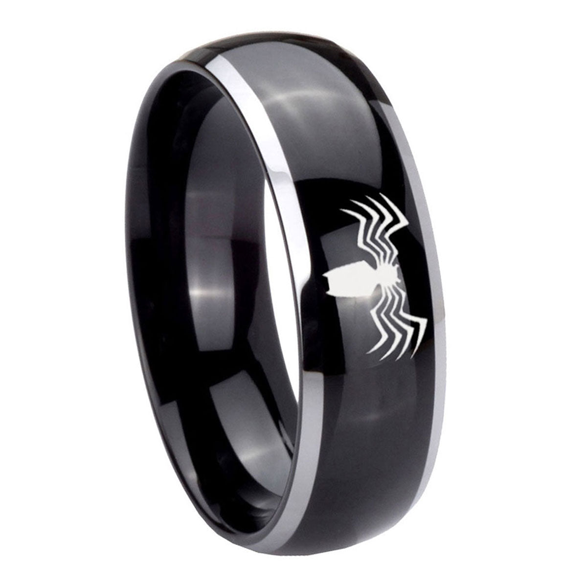 Make a promise with the 10mm Spider Dome Glossy Black 2 Tone Tungsten Carbide Mens Promise Ring. This glossy black and 2-tone dome ring with Spider design is ideal for commitments.