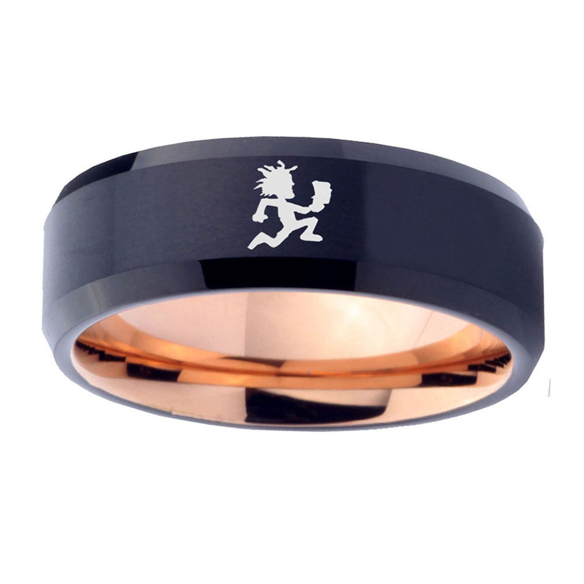 10mm Hatchet Man Bevel Tungsten Carbide Rose Gold Personalized Ring