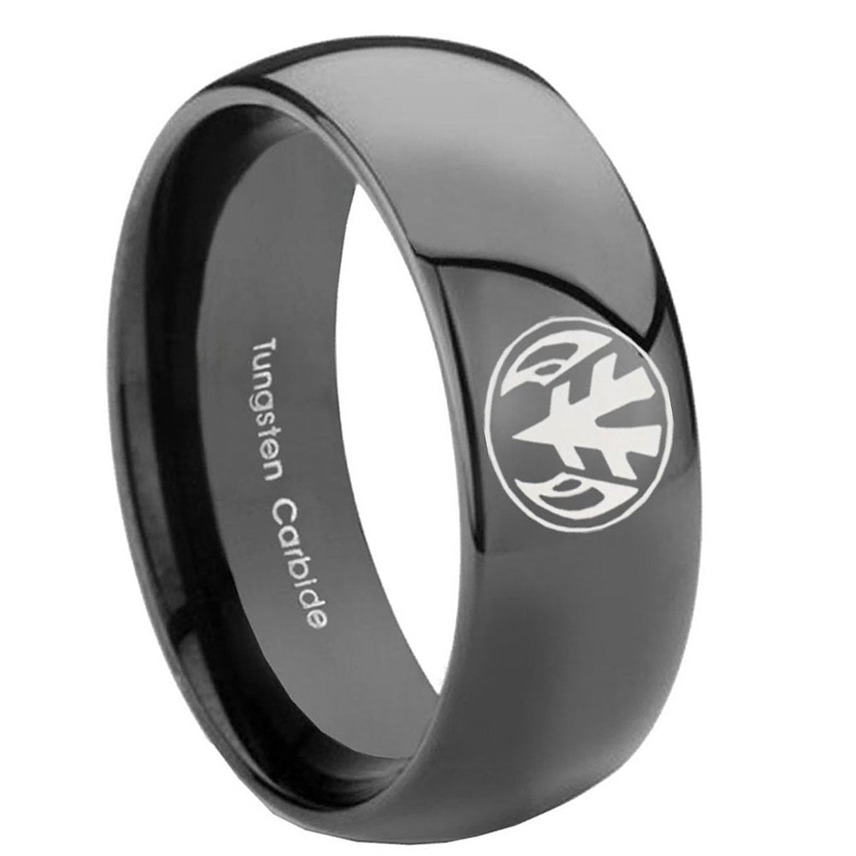 Celebrate with the 10mm Love Power Rangers Dome Black Tungsten Carbide Wedding Bands Ring. This dome-shaped black tungsten ring with Love Power Rangers design is perfect for weddings.