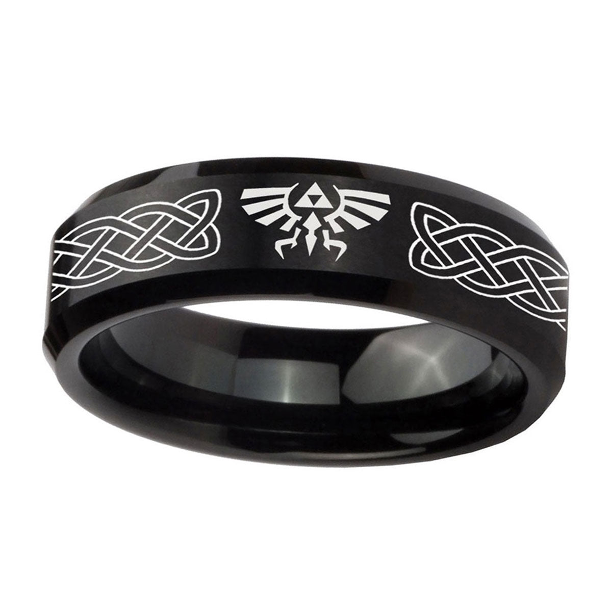 10mm Celtic Zelda Beveled Edges Brush Black Tungsten Custom Ring for Men