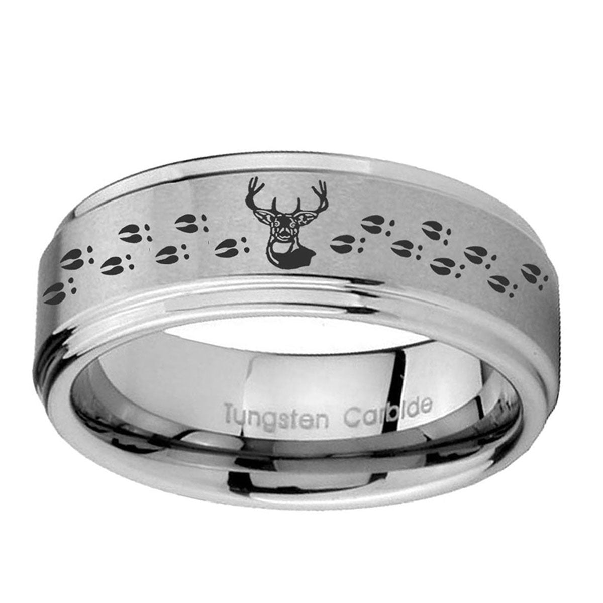 10mm Deer Antler Step Edges Brushed Tungsten Carbide Men's Wedding Ring
